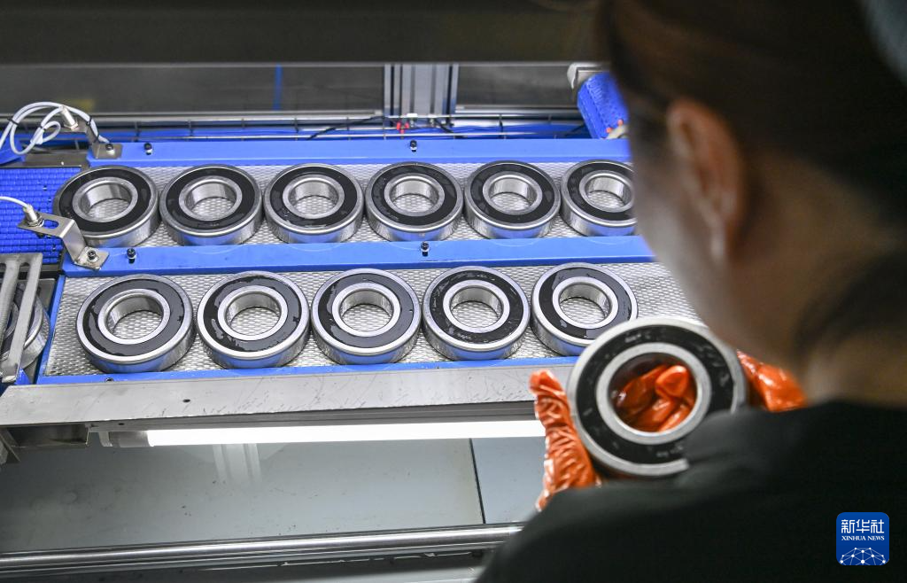 这是位于哈尔滨新区的哈尔滨轴承集团有限公司电机轴承数字化装配间生产的轴承产品(8月9日摄)。