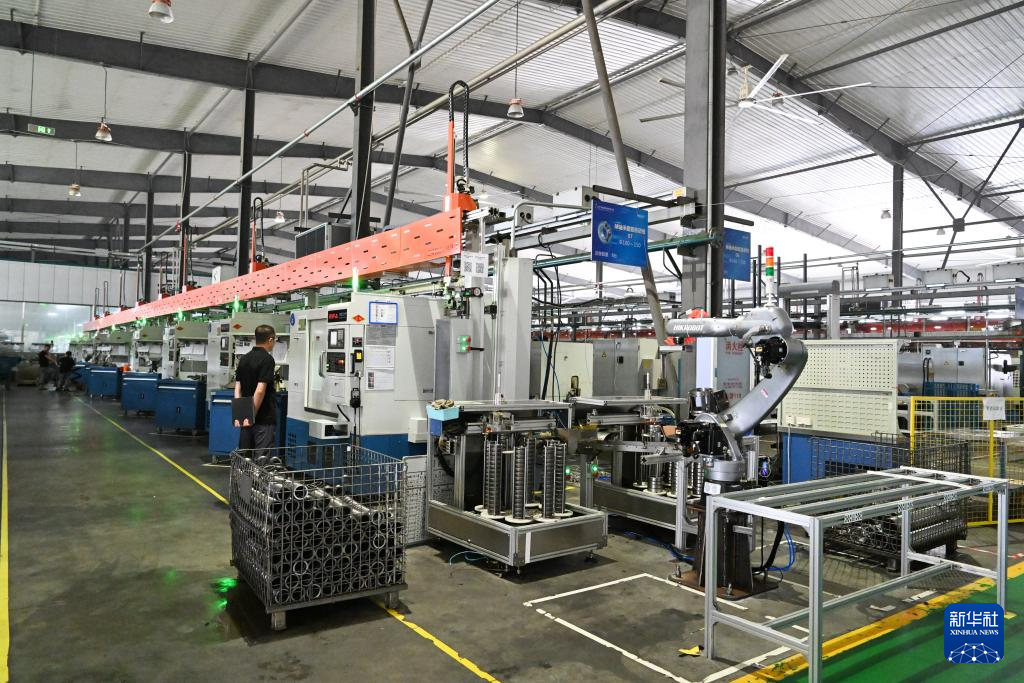 在位于哈尔滨新区的哈尔滨轴承集团有限公司,电机轴承数字化磨超自动生产线正在运行(8月9日摄)。