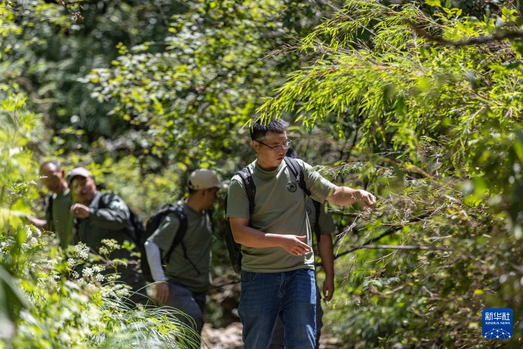 8月8日,在重庆雪宝山国家级自然保护区,工作人员进行野外巡护。