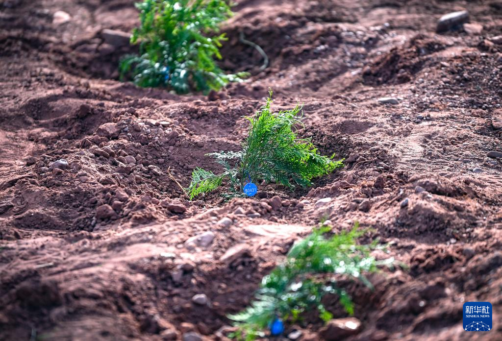6月5日,在西藏自治区芒康县林业产业扶贫苗圃基地,栽种好的崖柏幼苗系上了身份号码牌。