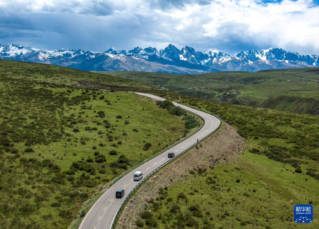 6月1日,在317国道炉霍至德格段,重庆雪宝山国家级自然保护区管理事务中心送崖柏进藏的车队在行进中。