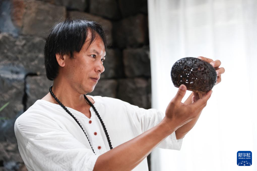 海南椰雕是以椰壳为原料的一种传统雕刻艺术,2008年被列入国家级非物质文化遗产名录。海南椰雕国家级非遗代表性传承人吴名驹初中时偶入椰雕工厂,被老艺人收为弟子,开始潜心学习椰雕技艺。33年来,他不断探索创新丰富椰雕工艺,同时还致力于椰雕文化的传承与发展,积极培养年轻一代椰雕艺术家,在多所高校开设相关课程,让这门艺术走向更广阔的舞台。