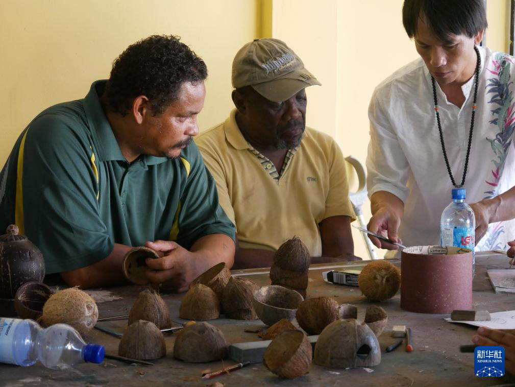 吴名驹在塞舌尔参加椰雕文化交流活动(资料照片)。