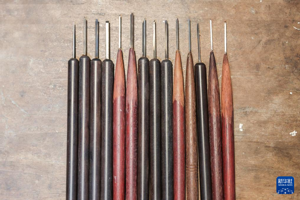 这是8月9日拍摄的吴名驹的椰雕工具。