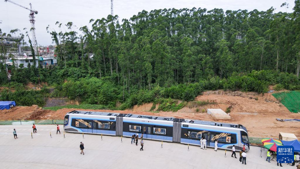 这是8月13日在印度尼西亚新首都努山塔拉拍摄的智轨系统(无人机照片)。