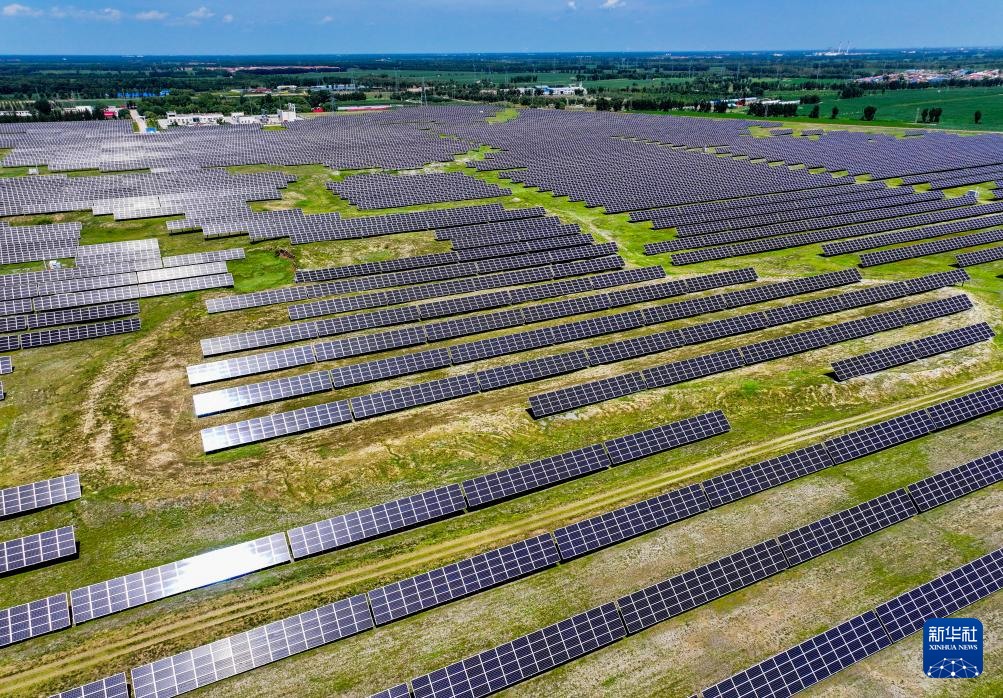 这是7月19日拍摄的内蒙古通辽发电总厂光伏电站(无人机照片)。