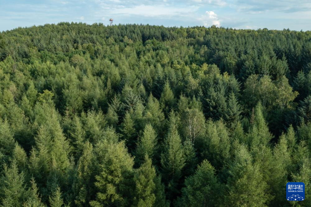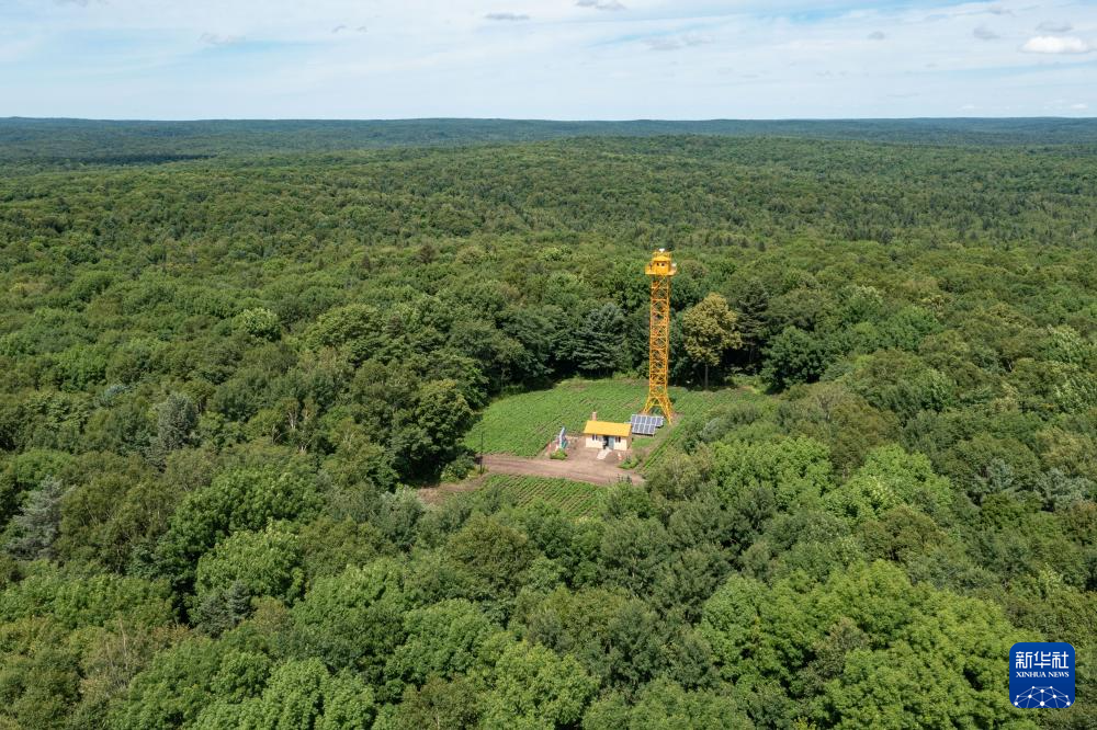 这是龙江森工集团绥棱林业局公司西北河林场的一座瞭望塔(7月26日摄,无人机照片)。