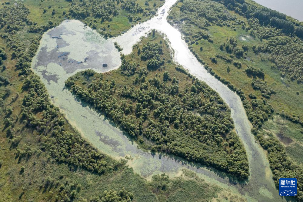 这是位于哈尔滨市的阿勒锦岛国家湿地公园一角(8月13日摄,无人机照片)。
