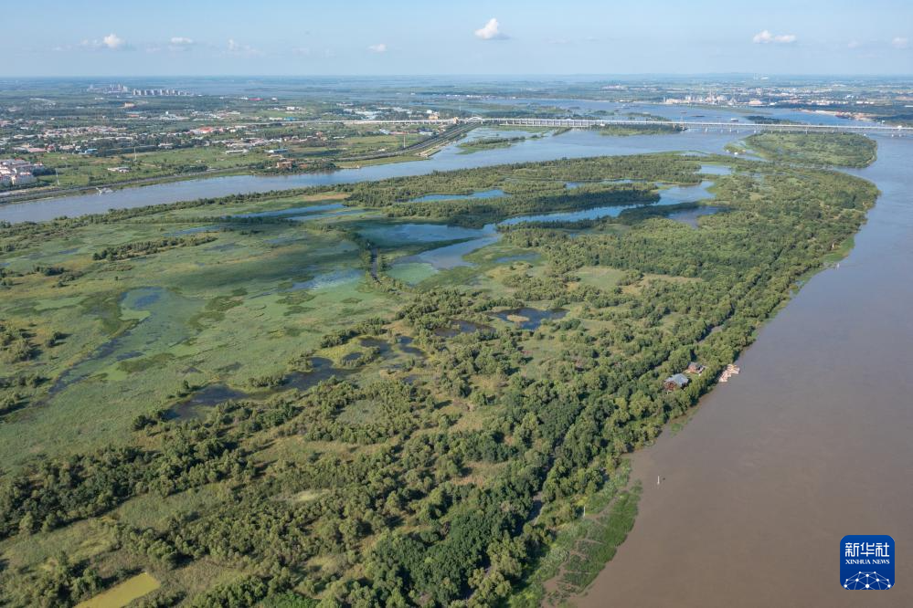 这是7月21日拍摄的位于哈尔滨市松北区附近的松花江上一处湿地(无人机照片)。