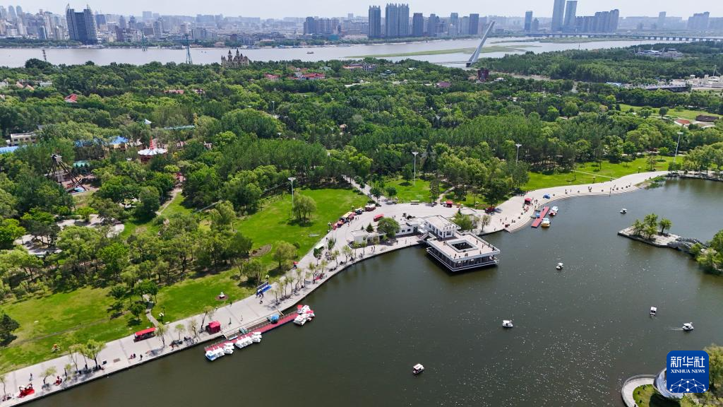 这是6月4日拍摄的哈尔滨太阳岛国家级风景名胜区一景(无人机照片)。
