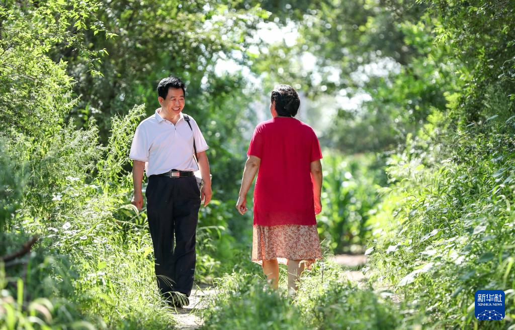 8月13日,梁春荣在出诊路上与村民交谈。