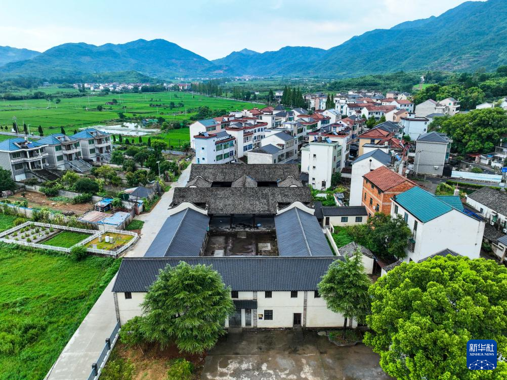这是8月14日拍摄的诸暨市赵家镇花明泉村古建筑懌善堂(无人机照片)。懌善堂曾经是花明泉村小学的校舍,如今修葺一新后将成为花明泉村村史陈列馆。