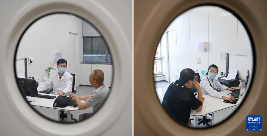 拼版照片,左图为:8月18日,宋立君在天津市第一中心医院(水西院区)坐诊;右图为:8月16日,王丽在天津市第一中心医院(水西院区)坐诊。