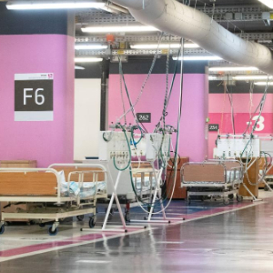 这是8月18日在以色列北部城市海法拍摄的地下应急战备医院。