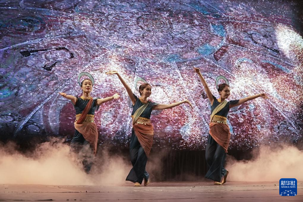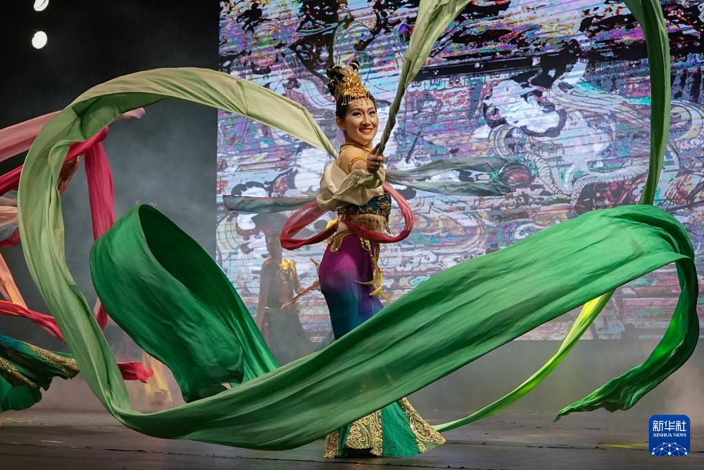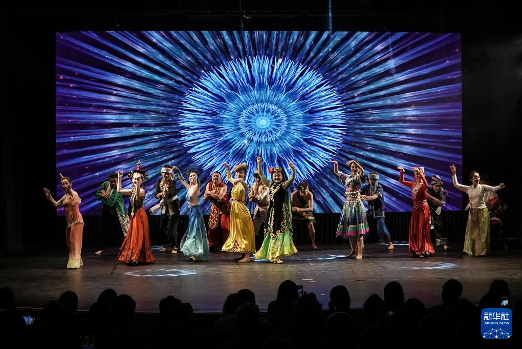8月18日,在巴西圣保罗,西北民族大学艺术团成员在“中国的色彩:民族万花筒”晚会上表演舞蹈。