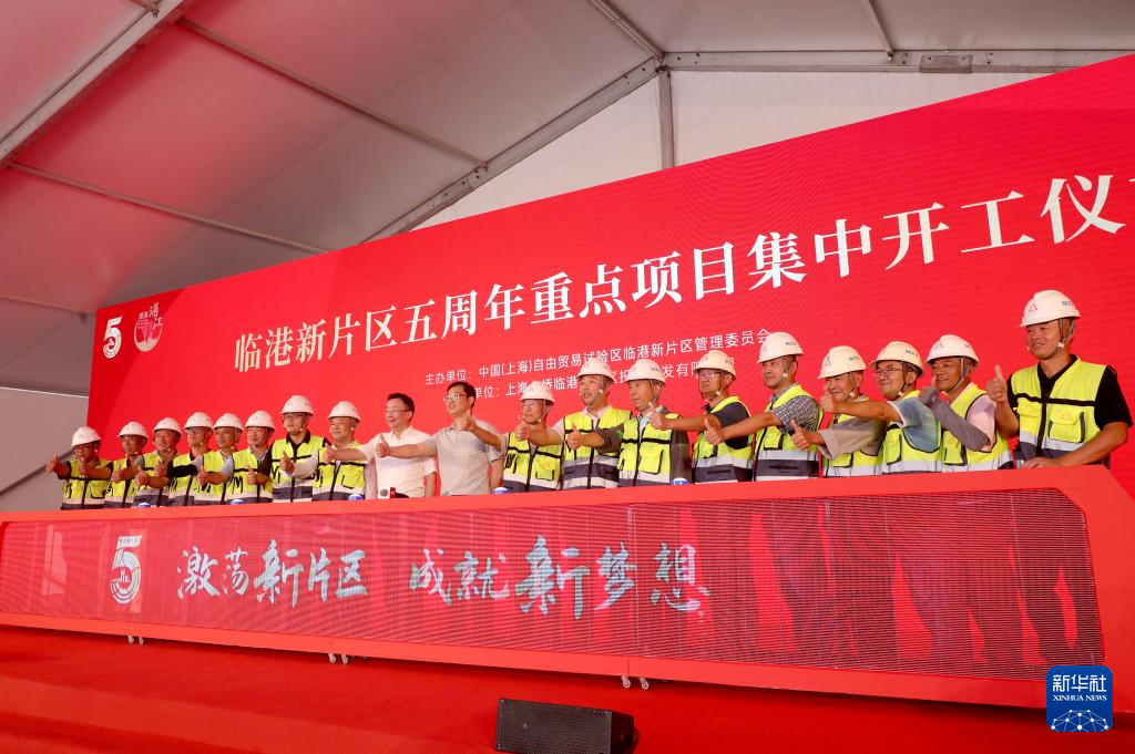 当日,中国(上海)自由贸易试验区临港新片区五周年重点项目集中开工仪式,在位于临港新片区的金桥临港汽车电子融合与应用研创园建设项目现场举行。
