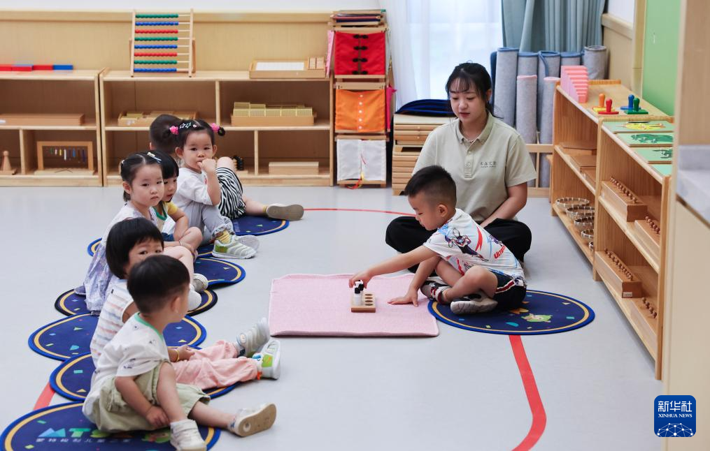 8月20日,在嘉兴市南湖区东栅街道的一家托育机构里,小朋友在上课。