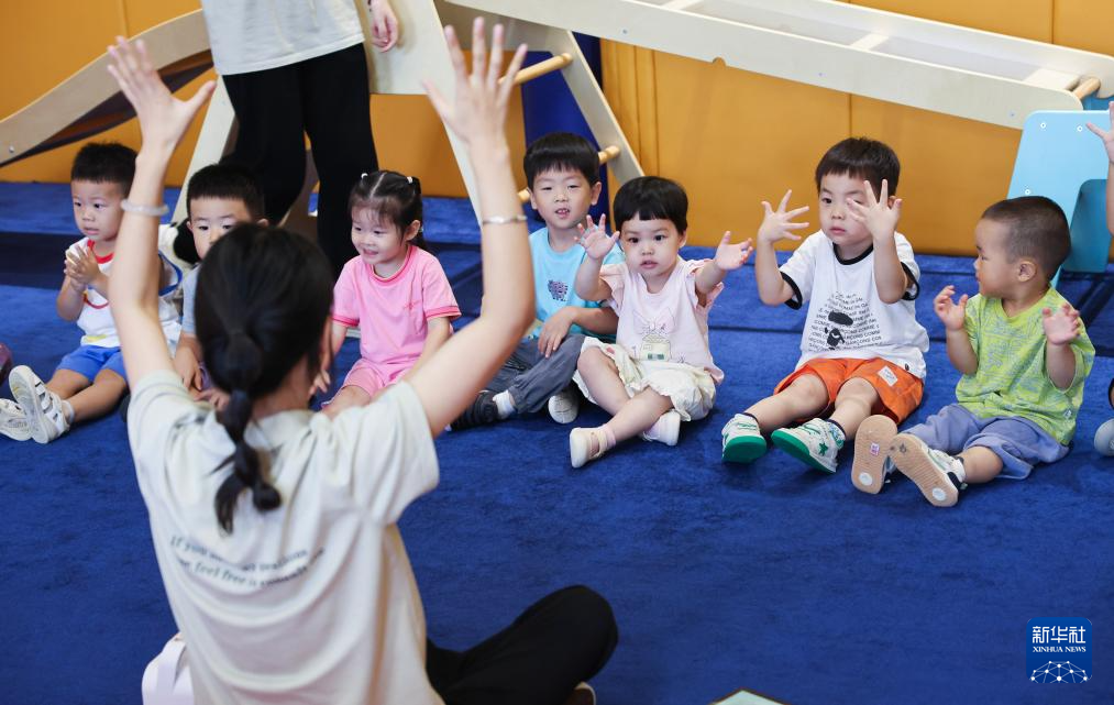 8月20日,在嘉兴市南湖区东栅街道的一家托育机构里,小朋友在活动。