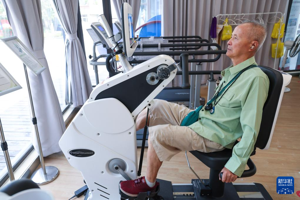 8月20日,老人在嘉兴市南湖区新嘉街道电子社区邻里中心内的“长者运动之家”锻炼。
