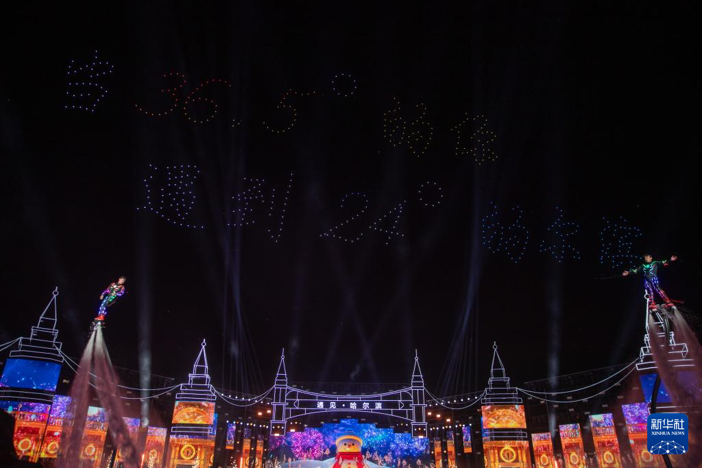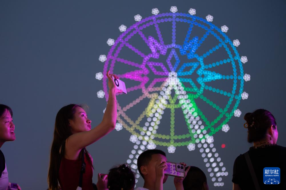 7月6日,人们在哈尔滨国际啤酒节现场观看无人机表演。