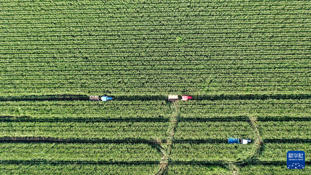 8月8日,在吉林省梨树县孤家子镇两家子村,农民收获鲜食玉米(无人机照片)。