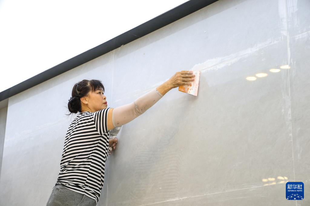 8月21日,在重庆市永川区智慧产业园项目,施工人员在进行室内装饰作业。