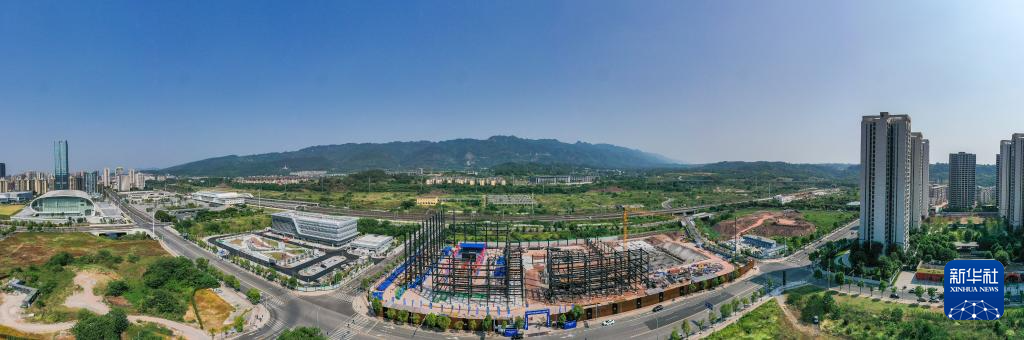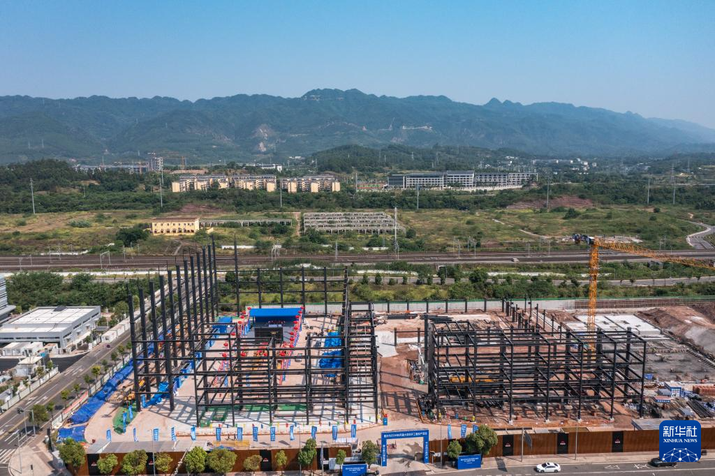 这是8月21日在重庆市永川区拍摄的智慧产业园和科技片场二期项目施工现场(无人机全景照片)。