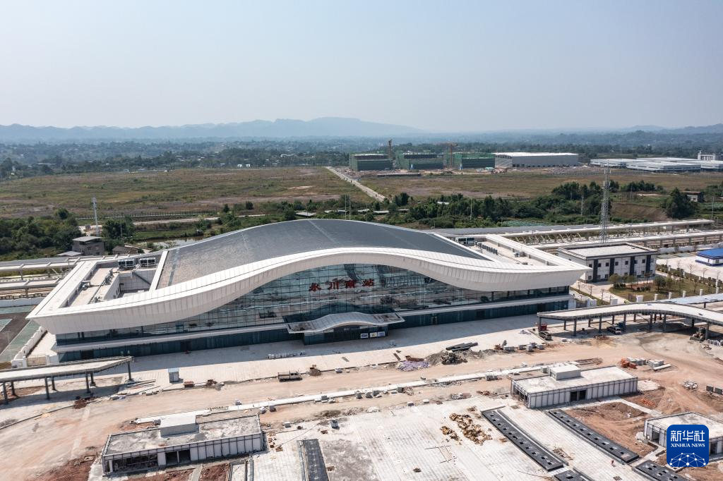 这是8月21日在重庆市永川区拍摄的渝昆高铁永川南站综合交通枢纽及配套设施项目施工现场(无人机照片)。