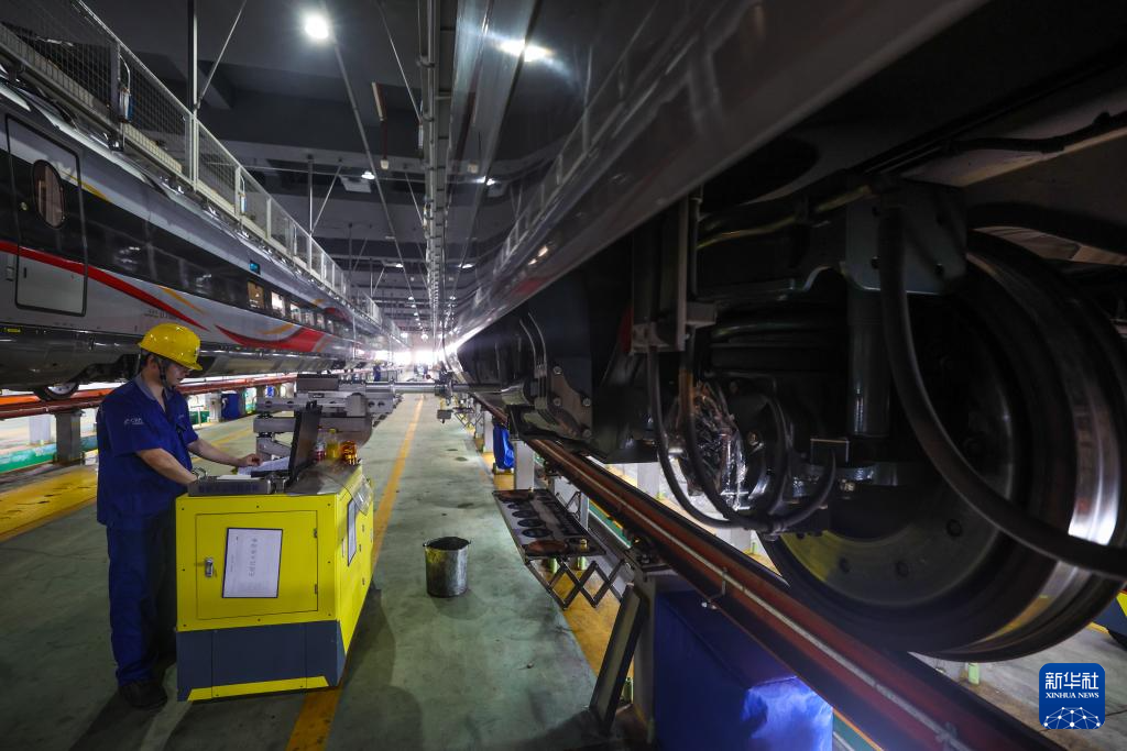 目前,新建杭州至温州高速铁路处于开通试运行阶段,多趟试运行高铁列车每日奔驰在杭温高铁上,对线路进行全面“实战”检测。为了确保试运行高铁列车的行驶安全,中国铁路上海局集团公司上海动车段杭州西动车运用所的铁路机械师们每隔2天就要对试运行列车进行一次细致的检修工作,保障杭温高铁顺利完成试运行、按期正式开通运营。
