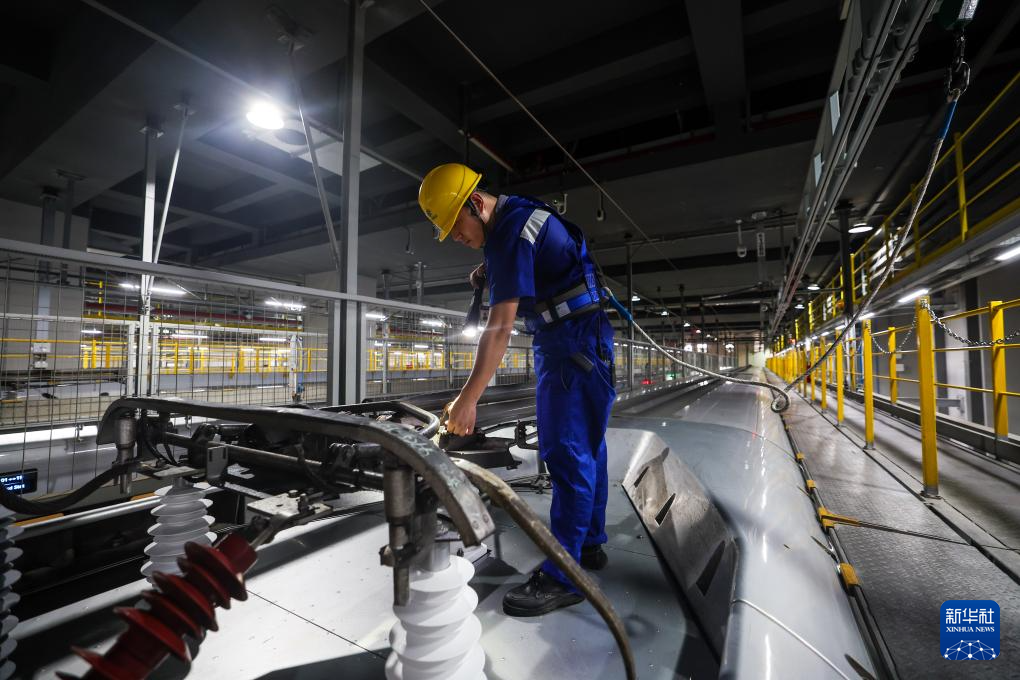 8月21日,杭温高铁试运行列车停在杭州西动车运用所内进行检修作业。