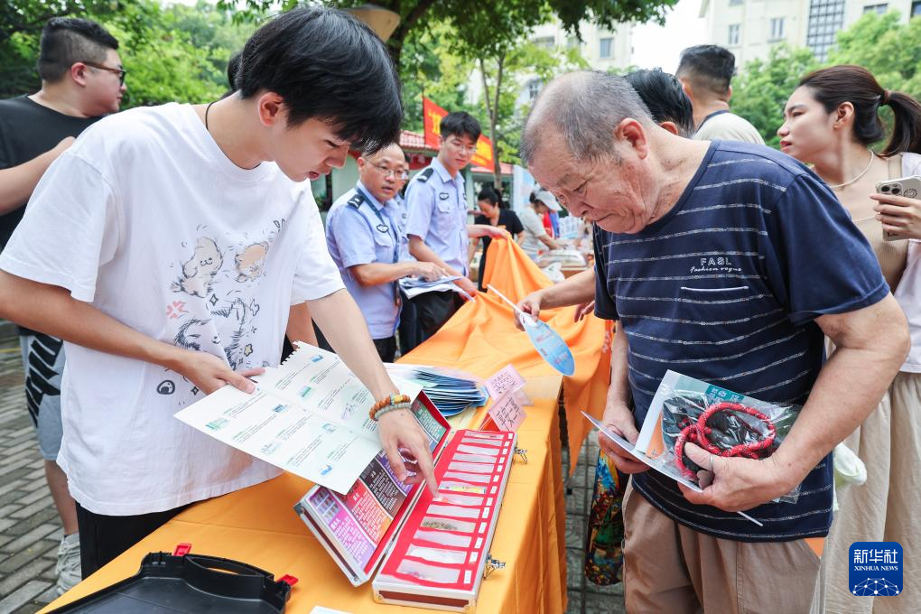 8月21日,在飞英街道的社区“有礼市集”上,居民在了解禁毒知识。