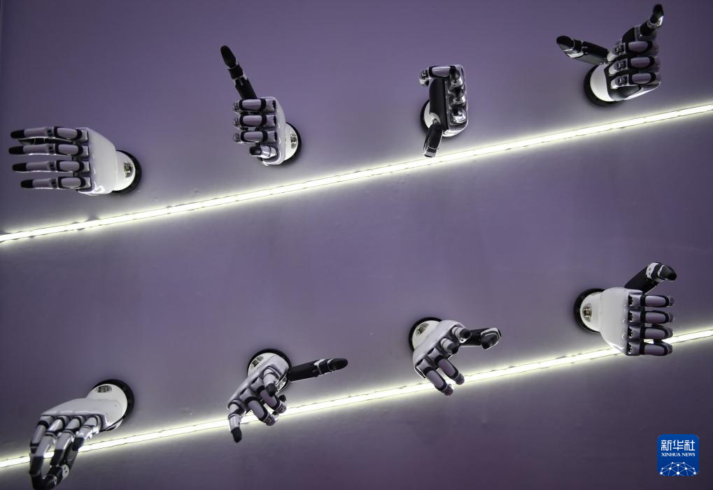 这是8月21日在2024世界机器人大会现场拍摄的一款名为“仿人五指灵巧手”的产品。