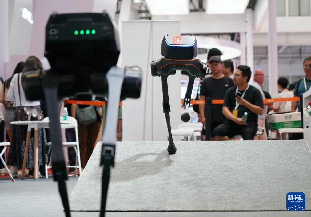 8月21日,一款两足机器人在2024世界机器人大会现场演示。