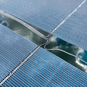 这是8月20日拍摄的位于宁夏灵武市马家滩镇的国家能源集团宁夏电力公司宁东电厂漂浮分布式光伏发电项目(无人机照片)。