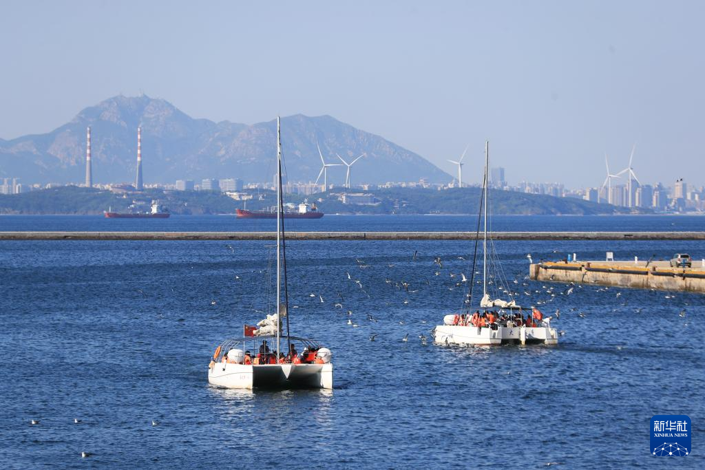 游客在辽宁大连东港商务区附近海边乘船出海游玩(2024年6月16日摄)。