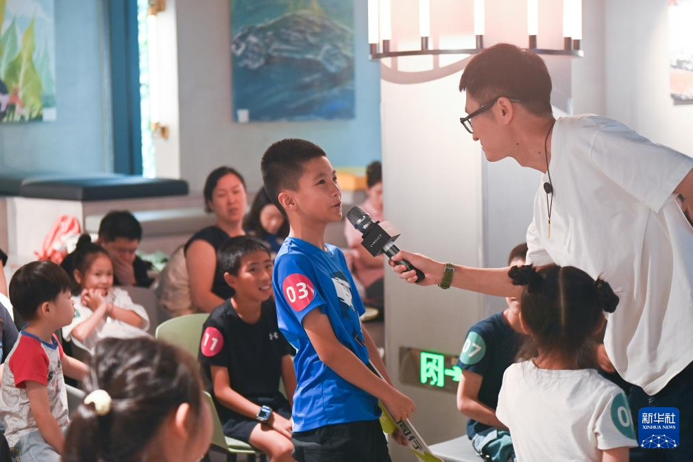 8月22日,小朋友在交通安全课程上参与问答。