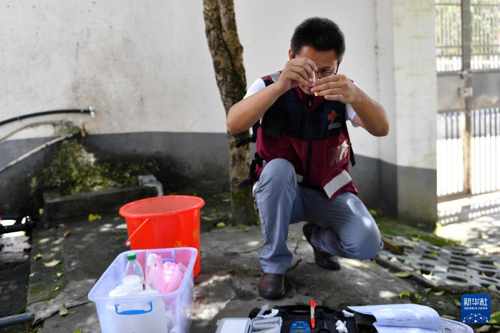 8月23日,资兴市疾控中心工作人员在资兴市第二中学检测水质。