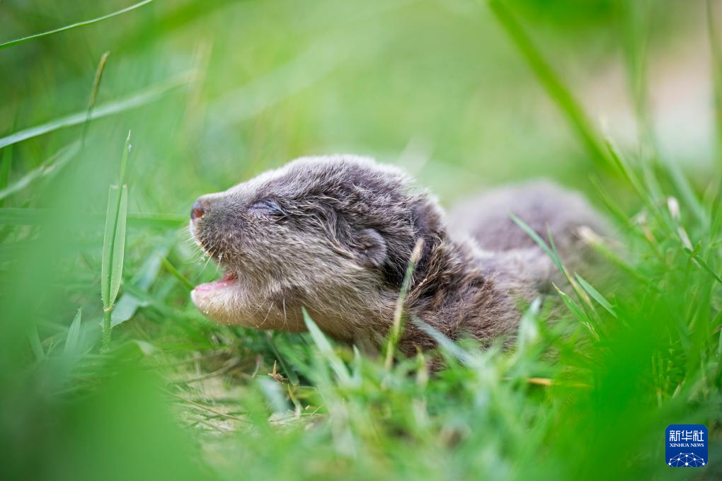 这是8月23日在新加坡东海岸公园拍摄的一只与族群失散的江獭幼崽。