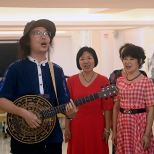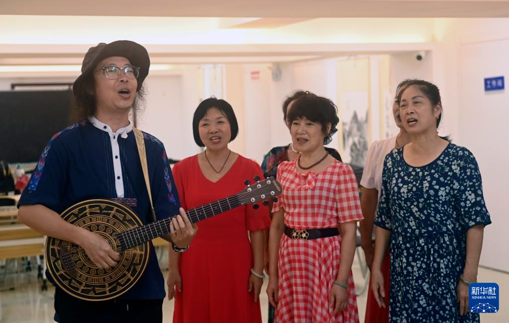 8月24日,在南宁市良庆区蟠龙社区文体活动室,居民在一起唱歌娱乐。