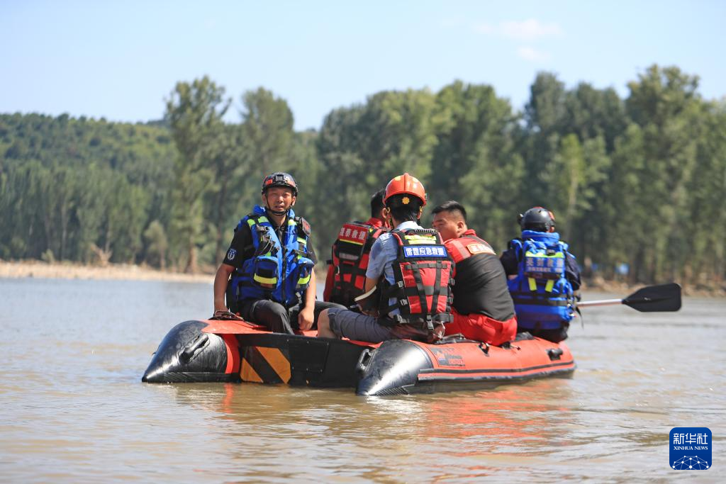 8月23日,在葫芦岛市建昌县黑山科乡,救援队员乘坐橡皮艇去救援受灾群众。