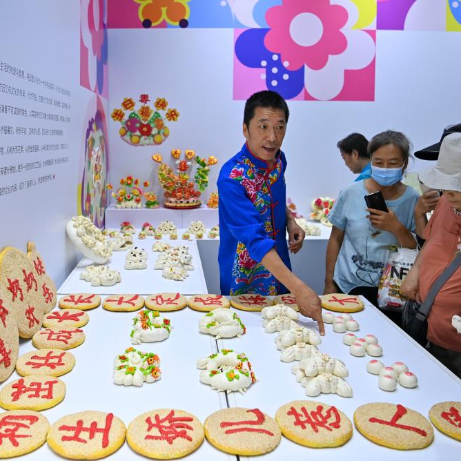 近日,2024中国非遗面食大会中国面塑艺术展在山西省太原市开展。本次展览以“妈妈的面团有魔法”为策展主线,共展出各类花馍、面塑等作品300余件。展览将持续至9月8日。