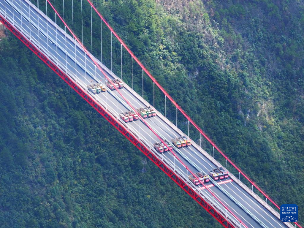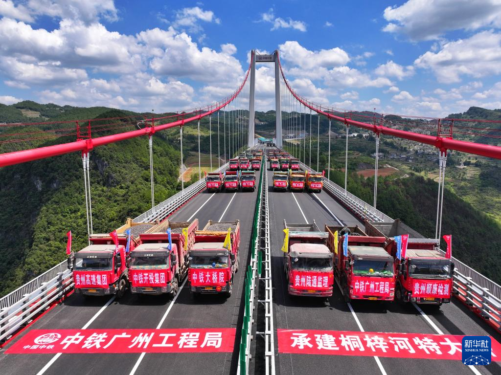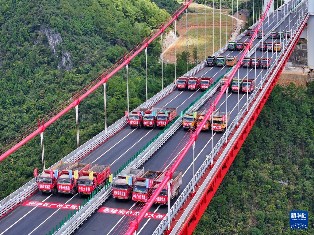 当日,由中铁广州局承建的贵州金(金沙)仁(仁怀)桐(桐梓)高速桐梓河特大桥开始进行荷载试验,数十辆大货车按照精密设计的方案停放在特定位置,模拟极端荷载下的桥梁状态,全面评估桥梁工作性能,确保其安全无虞。