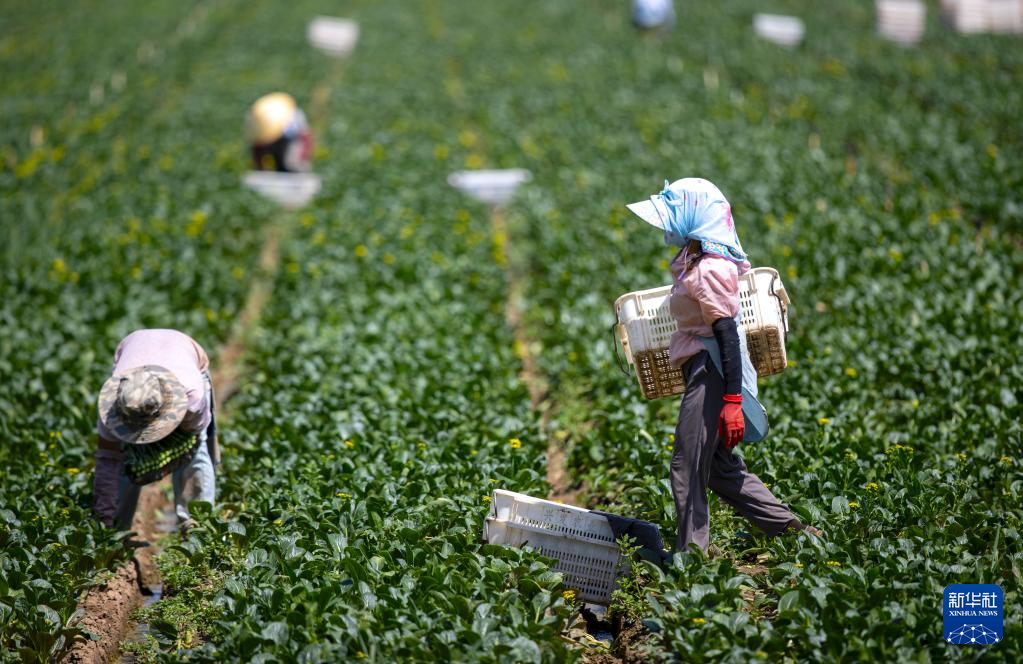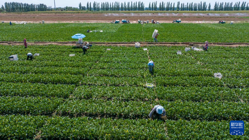 眼下,宁夏青铜峡市瞿靖镇的2.8万亩蔬菜正值采收时节,田间地头一片忙碌景象。近年来,青铜峡市瞿靖镇因地制宜发展规模化大地蔬菜种植产业,种植芥蓝、菜心等面向南方市场的蔬菜品种,并建设了配套冷库,产品主要销往粤港澳大湾区。