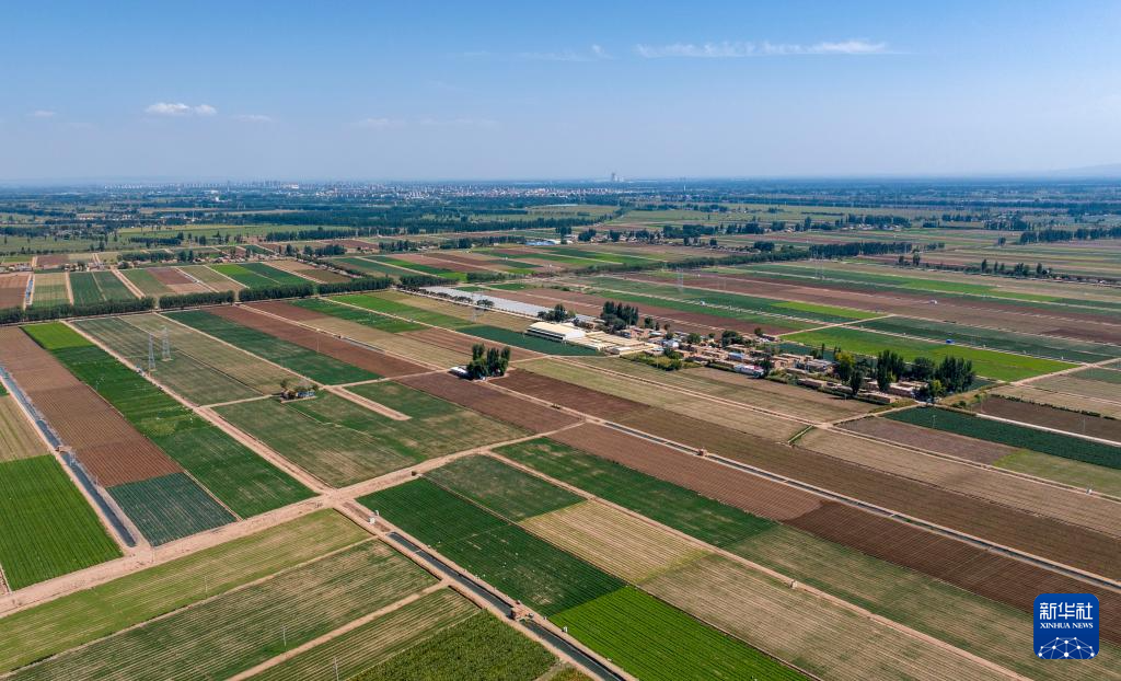 这是8月23日拍摄的宁夏青铜峡市瞿靖镇毛桥村蔬菜种植基地(无人机照片)。