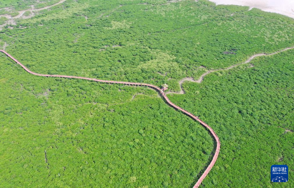 这是8月24日拍摄的广西北仑河口国家级自然保护区的红树林(无人机照片)。