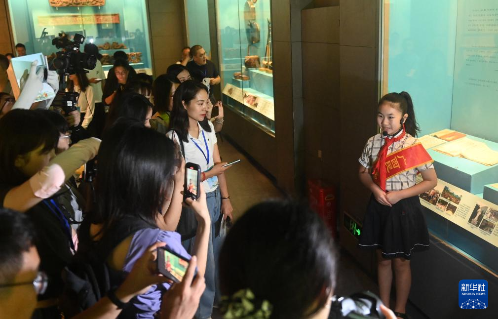 8月24日,在位于南宁的广西民族博物馆,11岁的“红领巾”志愿讲解员周思言为参观者讲解。