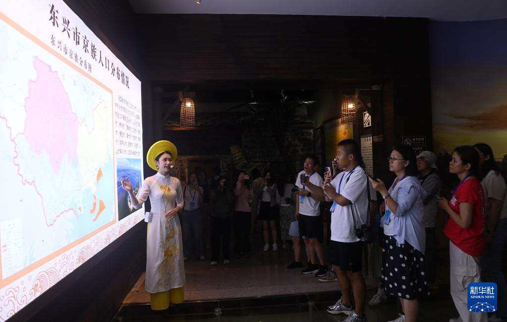 8月24日,在广西东兴京族博物馆,讲解员在介绍京族历史文化。