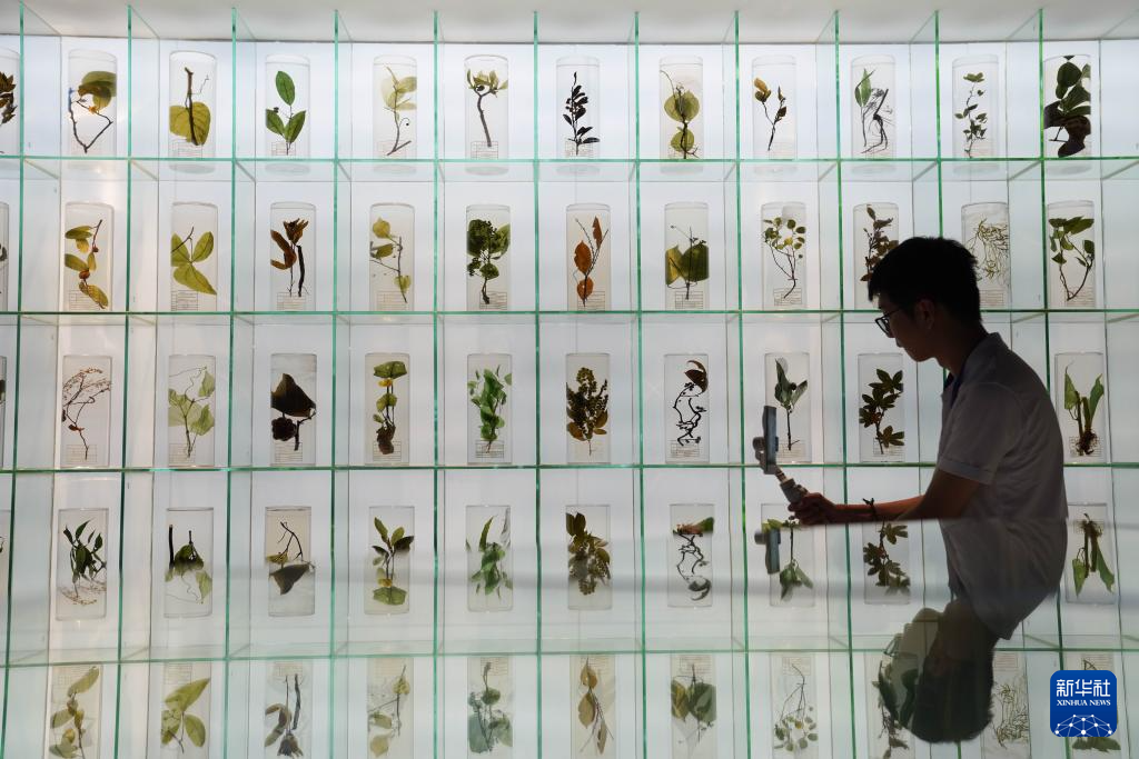 8月24日,参观者在位于广西金秀的瑶医药博物馆拍摄瑶药材标本。