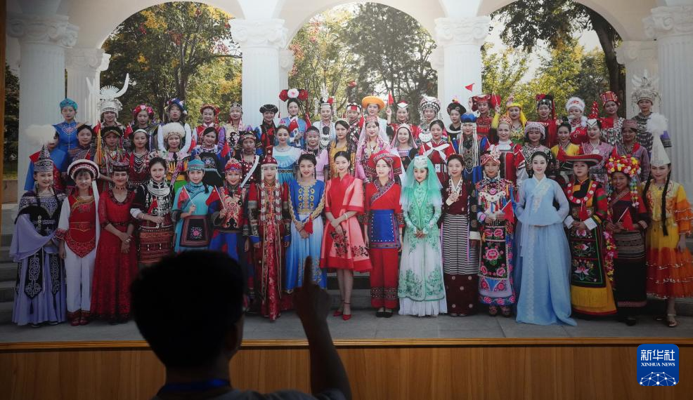 8月24日,一名观众在位于南宁的广西民族博物馆参观“铸牢中华民族共同体意识历史文化展”。