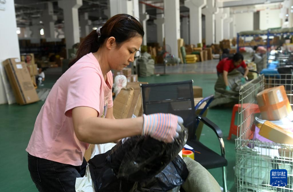 8月26日,在广西凭祥市一家物流企业,工作人员在处理跨境电商邮件。